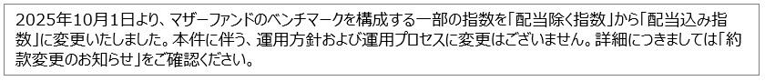 投資信託へのご投資を検討される場合には、必ず投資信託説明書(交付目論見書)をご覧ください。また、ファンドの取得のお申込みを行う場合には投資信託説明書(交付目論見書)をあらかじめ、または同時に販売会社よりお渡しいたしますので、必ず投資信託説明書(交付目論見書)で内容をご確認の上、ご自身でご判断ください。