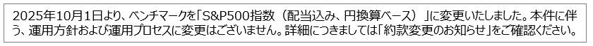 S&P500種株価指数※をベンチマークとし、中長期的にベンチマークを上回る運用成果をあげることを目標に運用を行います。