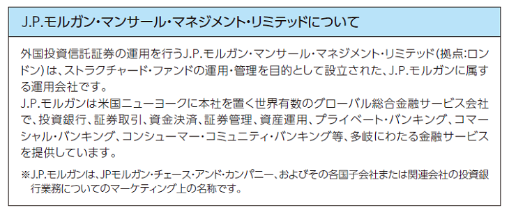 外国投資信託証券の運用はJ.P.モルガン・マンサール・マネジメント・リミテッドが行います。